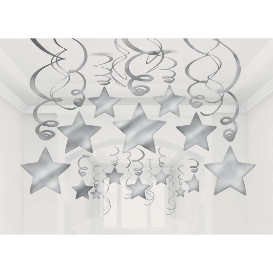 Silver Shooting Stars Foil Swirl Decorations Mega Value Pack