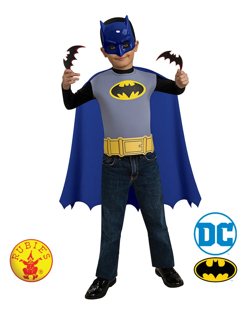 - Top with printed Bat emblem on chest and full length sleeves plus attached cape with scalloped hem