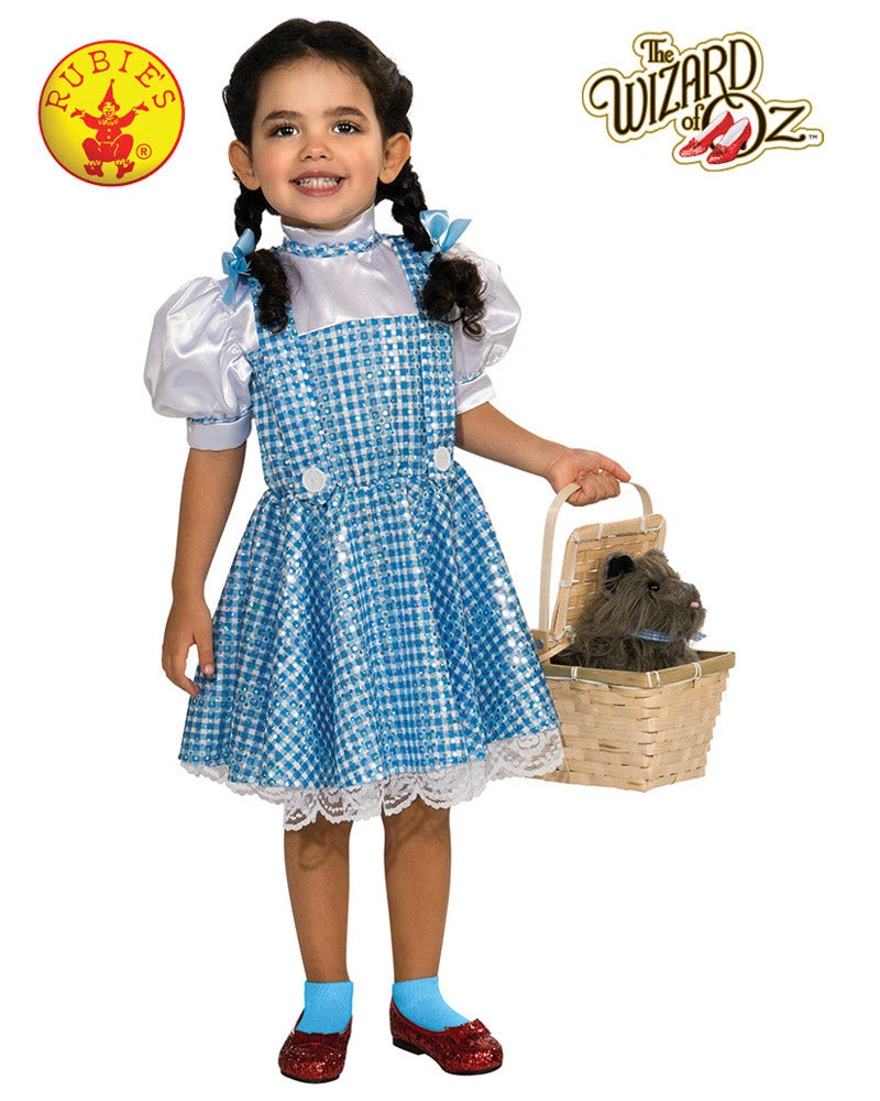 - Pinafore with Gingham printed sequin bodice and shoulder straps, plastic buttons at waistline, satin mock shirt with stand-away collar with trim