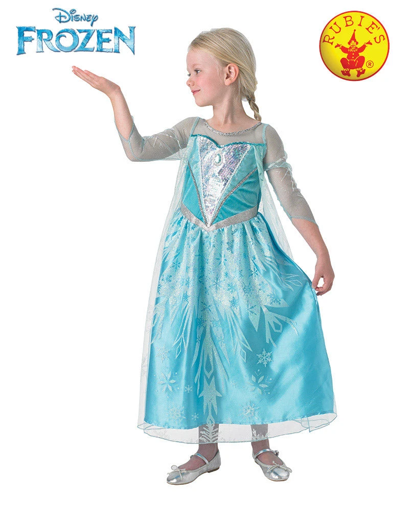 “Let It Go!” From the blockbuster Disney movie Frozen (2013) featuring actor and singer Idina Menzel, become magical Queen Elsa as you journey to Arendelle with your sister Anna. Meet new friends Olaf, Kristoff and Sven and together, find the strength and power to reverse the curse that has plunged you and your kingdom into an eternal winter.