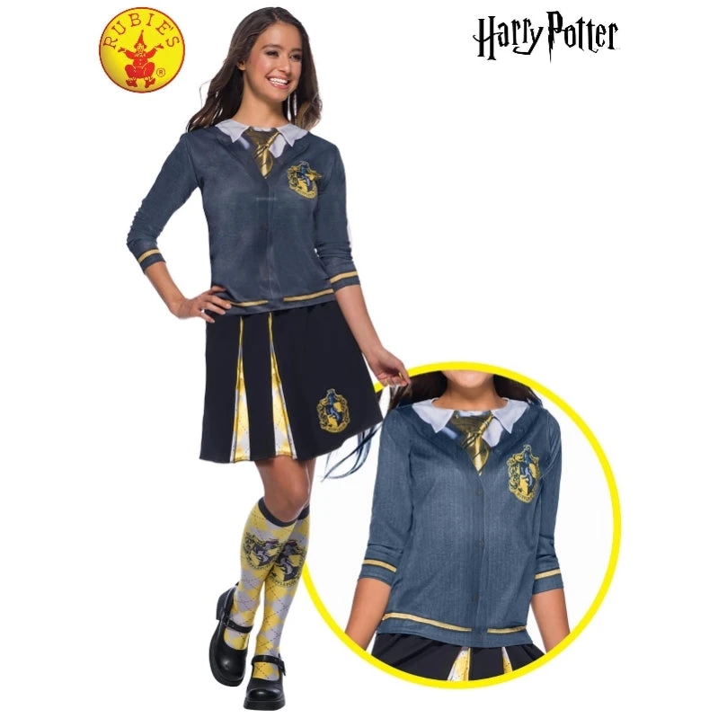- Printed detail includes cardigan with cuff details and buttons, shirt, tie and house emblem