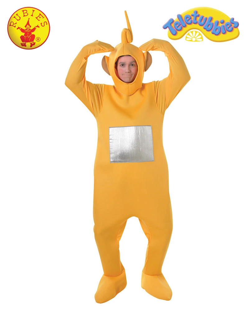 Straight from Tellytubby Land, this cute little yellow character is from the UK TV series The Teletubbies, where Laa-Laa and her four colourful friends Dipsy, Po and Tinky-Winky, speak gibberish and dance around watching television screens on their stomachs! With her curly antenna and favourite toy, an orange rubber ball, become Laa-Laa and listen for the large pin-wheel shaped windmill, indicating that a magical event is about to begin!