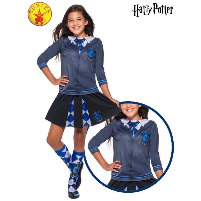 - Printed detail includes cardigan with cuff details and buttons, shirt, tie and house emblem