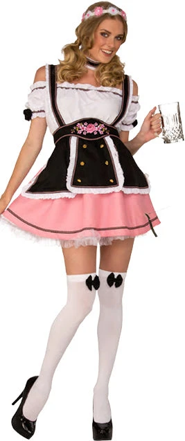 - Nylon thigh highs have a sewn on bow at the top and the choker collar is printed material with velcro fasteners at the rear. Shoes not included