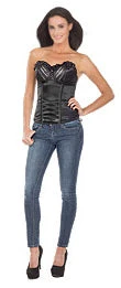 - Satin corset with printed scratch detail on the cups and frill embellishment along the sweetheart neckline