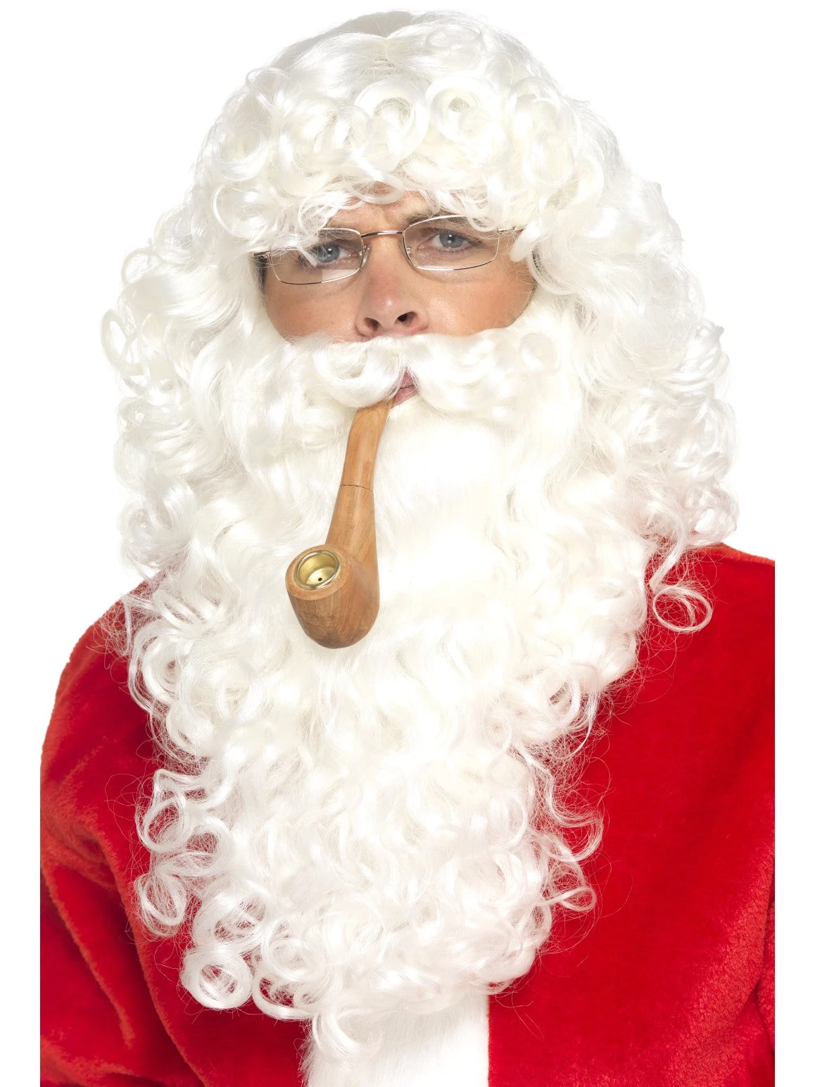 Santa Dress Up Kit, White, with Wig, Beard, Glasses & Pipe, Deluxe